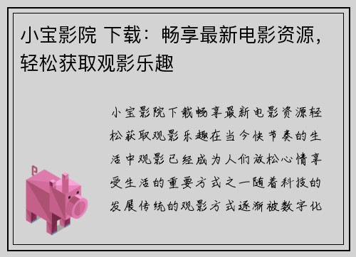 字幕下载 射手网:轻松获取最新影视字幕的最佳选择 在当今信息爆炸的时代,影视作品的数量不断增加,观众对于字幕的需求也随之上升。尤其是对于那些非母语影视作品,字幕不仅是理解剧情的关键,更是享受影片的...